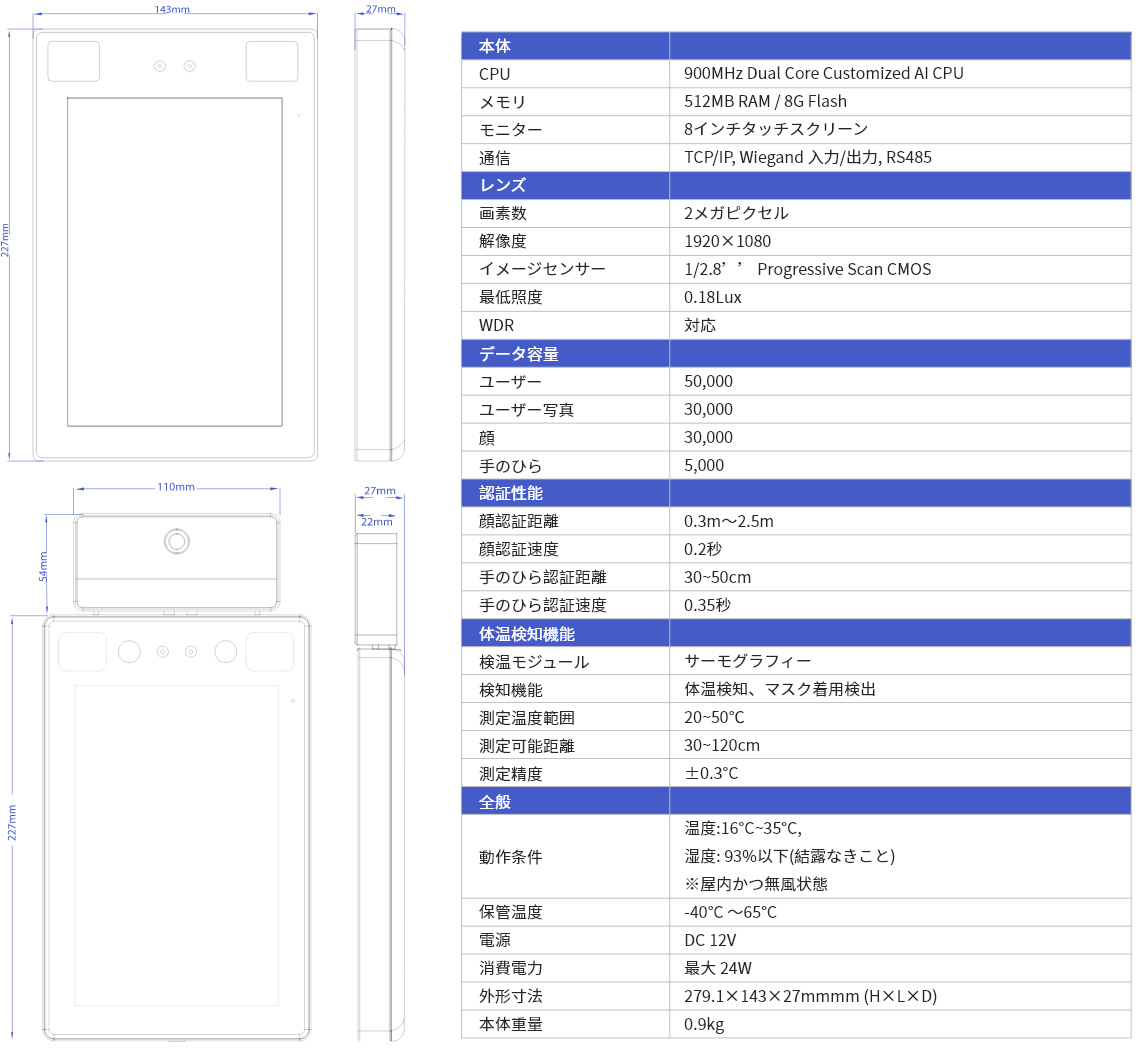 ・印刷物攻撃(レーザー、カラー、B/W写真)、ビデオ、3Dマスク攻撃に対応可能